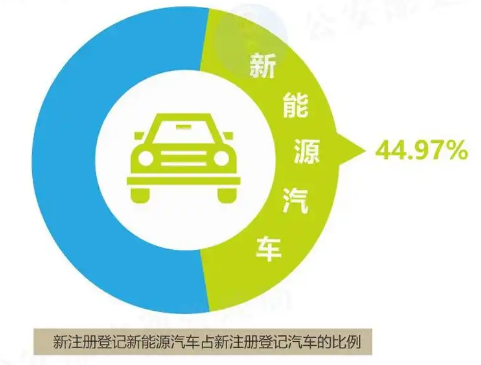 上半年新注册登记新能源汽车562.2万辆,同比增长27.86%,创历史新高。新能源汽车新注册登记量占汽车新注册登记量的44.97%。